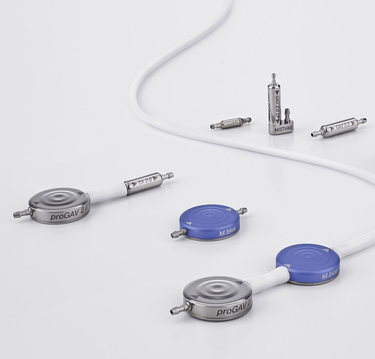 The adjustable valves from MIETHKE can be adjusted from 0 to 20 cmH2O (differential pressure valves) and 0 to 40 cmH2O (gravitational valves) postoperatively and non-invasively.