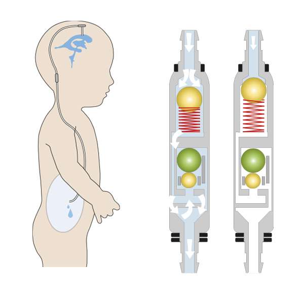 - ein Graviationsventil zur Behandlung des Hydrocephalus bei Kindern