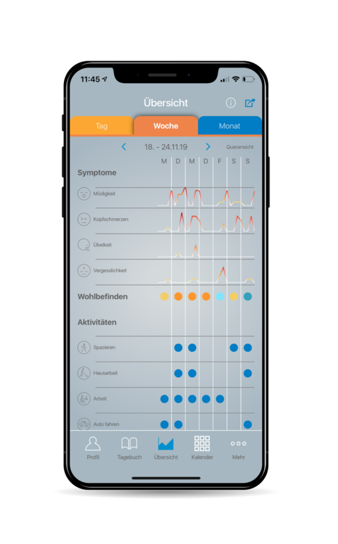 Tagebuch: Wohlbefinden, Symptome & Aktivitäten